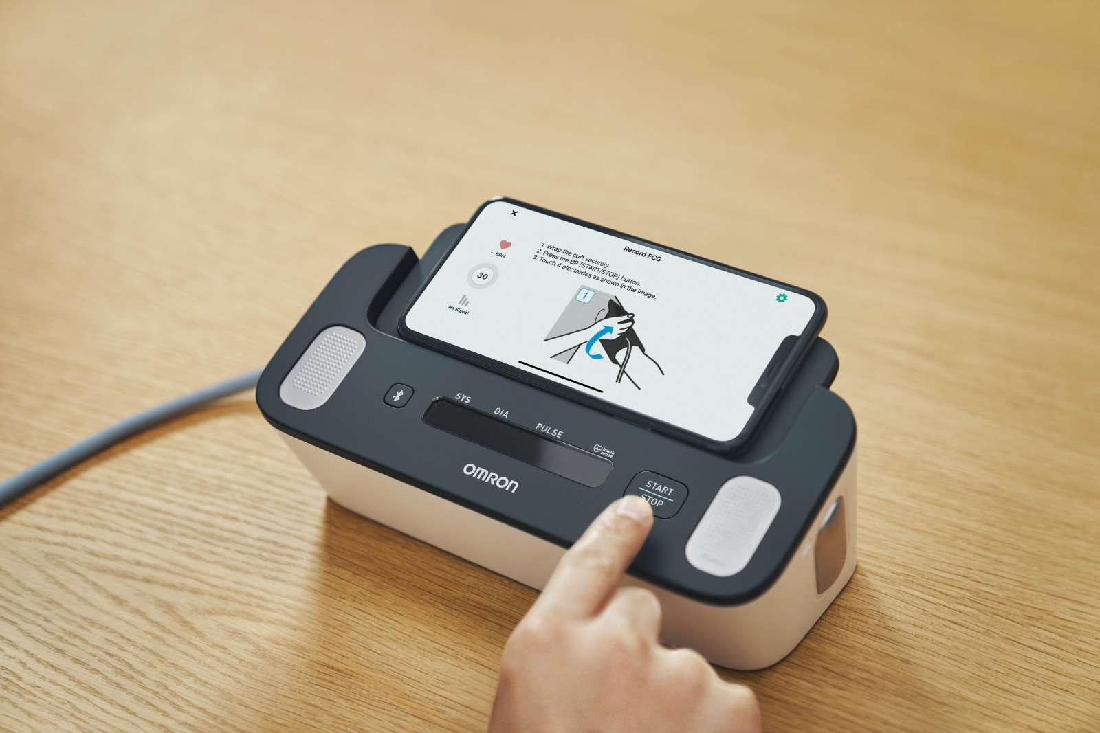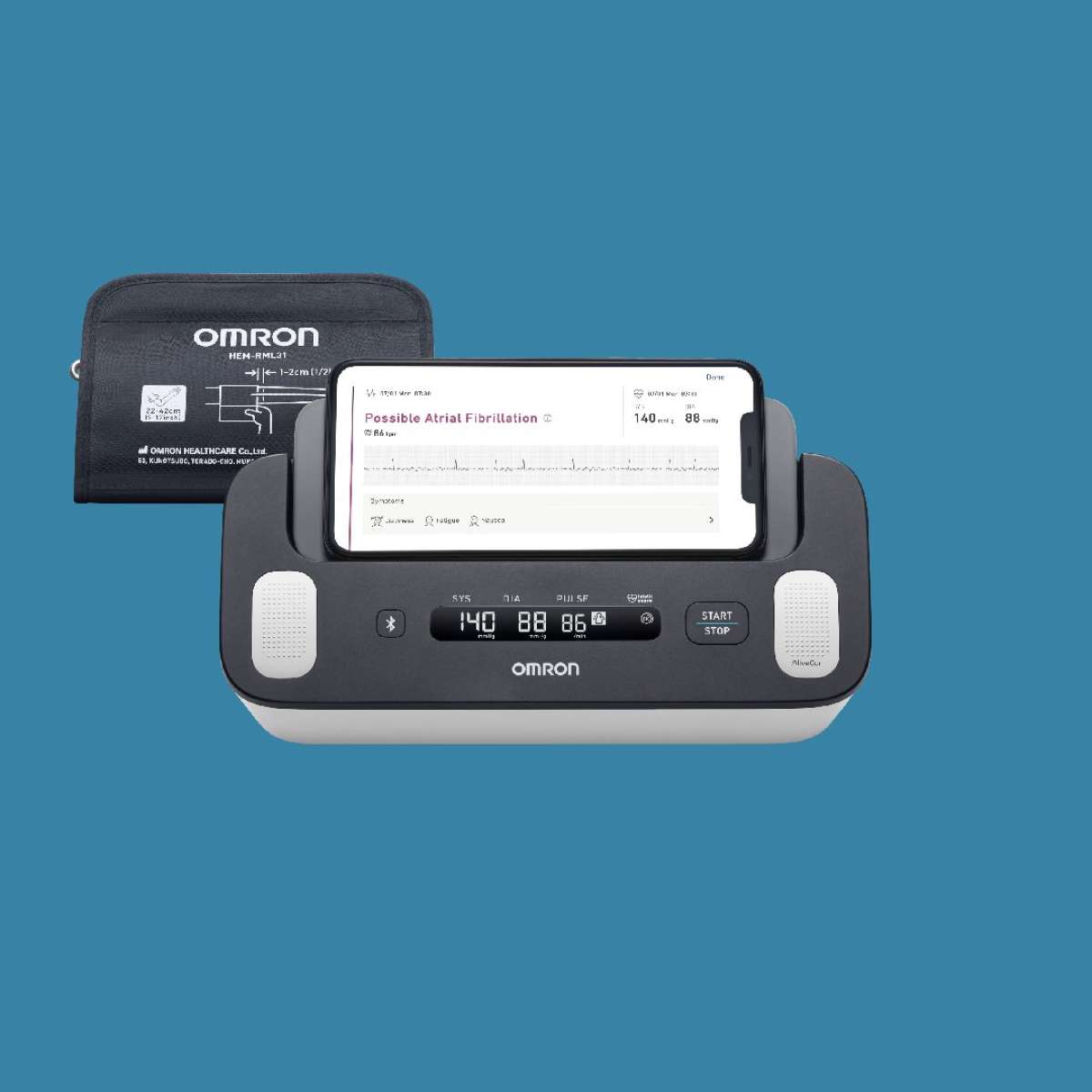 Misuratore di pressione arteriosa clinicamente validato con bracciale Intelli Wrap e screening automatico della fibrillazione atriale ad ogni misurazione, per un monitoraggio affidabile della salute cardiaca.