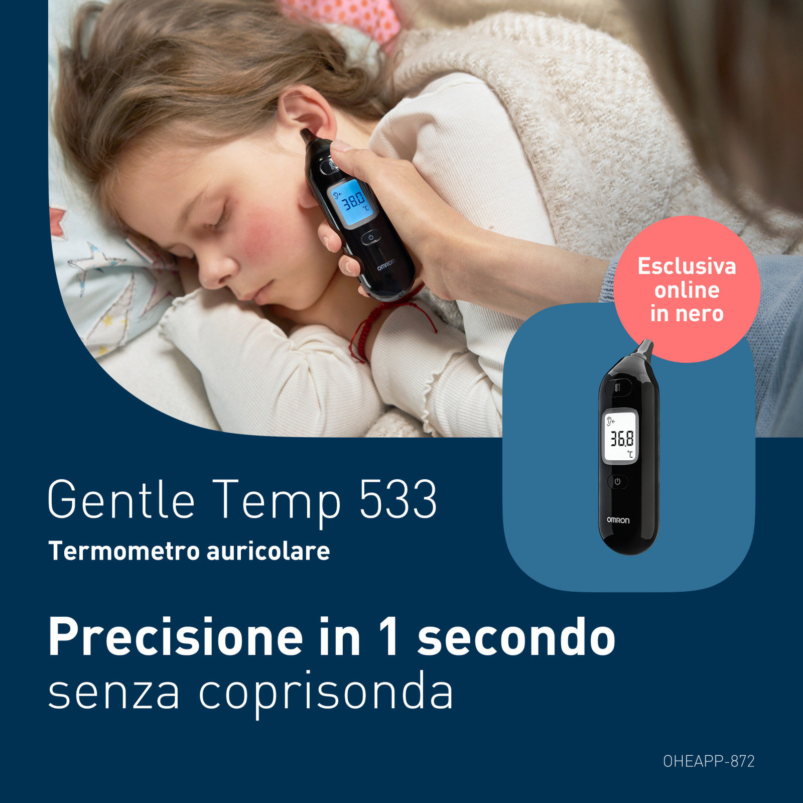 Gentle Temp 533 combina misure di temperatura ad alta precisione e ad alta velocità in un solo secondo. Accurato, veloce, silenzioso, sostenibile e conveniente per le famiglie moderne. Facile da pulire in un attimo e da riutilizzare con facilità, non richiede parti monouso, è igienico per design e con una rapida passata è pronto per essere riutilizzato. Non c'è bisogno di coperture per le sonde (meno uso di plastica e nessun costo aggiuntivo). È in grado di misurare la temperatura in totale silenzio: la modalità di spegnimento del cicalino garantisce un utilizzo silenzioso e discreto in qualsiasi momento. Questo termometro memorizza 30 letture grazie alla funzione di memoria incorporata: perfetto per monitorare le tendenze nel tempo.