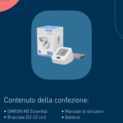 OMRON M2 Essential è un misuratore di pressione arteriosa da braccio clinicamente validato per uso domiciliare, progettato per offrire misurazioni affidabili e confortevoli. È dotato dell’esclusiva tecnologia Intellisense™ di OMRON, che applica automaticamente la pressione ottimale, evitando il disagio causato da un gonfiaggio eccessivo del bracciale. Inoltre, M2 Essential include la rilevazione del movimento corporeo, che aiuta a garantire l'accuratezza della misurazione segnalando eventuali movimenti durante l’utilizzo. Con una capacità di memoria ampliata (fino a 30 misurazioni), consente di monitorare meglio l’andamento della pressione nel tempo.